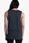 Sleeveless tank, raw armhole edges, stone wash finish with a worn look
