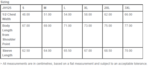 | Half Chest (cm): | 48.5 | 51 | 53.5 | 56 | 58.5 | 61 | 63.5 | 68.5 | 42.5 | 45 | 47.5 | 50 | 52.5 | 55 | 57.5 | 60 | 63 | 66.5 |