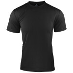 moisture removal microknit, snag resistant easy care fabric. Self fabric binding finishes neck and armholes, contrast side panels with back neck reflective tab for ear phones.